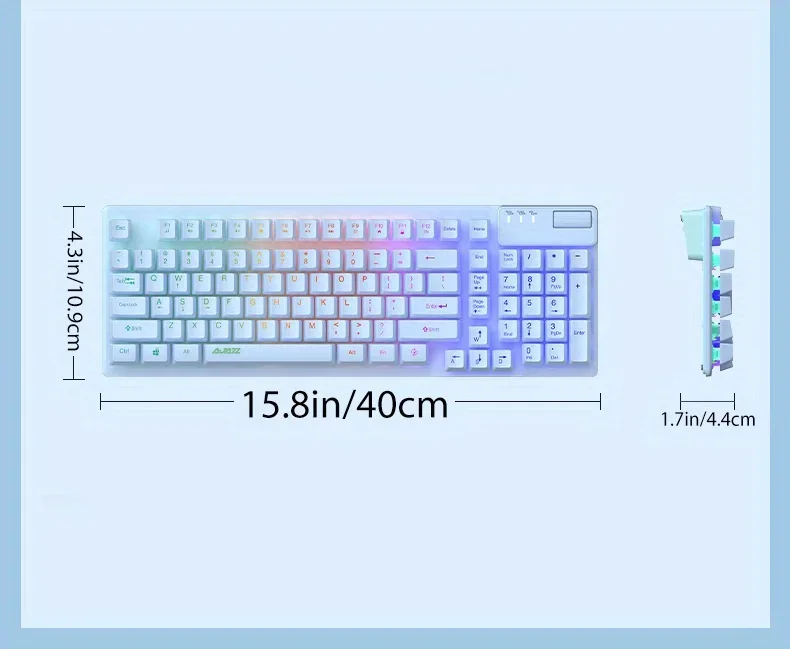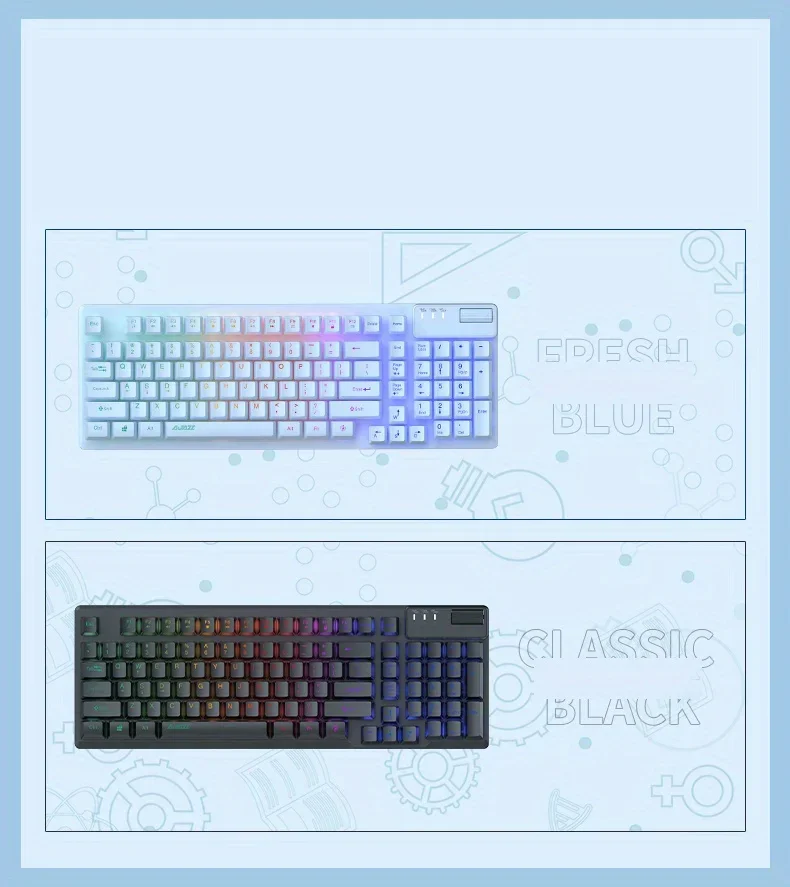The Ajazz™ Wired Mechanical Keyboard features 98 keys in a compact layout, ideal for gamers, creatives and professionals. With tactile mechanical switches, it offers a satisfying typing experience, ergonomic comfort and a clean, modern aesthetic for any setup.